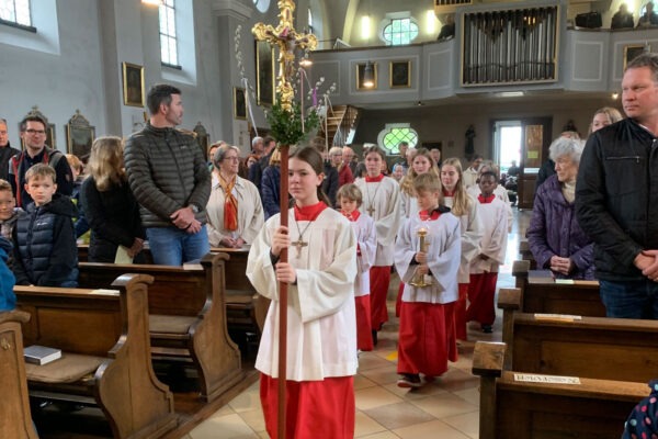 Am nächsten Tag ging es auf eine schöne Wanderung von Aubing nach Lochhausen. Dort kam man kulinarisch bei einem Kuchenbuffet zusammen und es wurden noch letzte Details für den von dem jugendlichen vorbereiteten Gottesdienst besprochen, der in Sankt Michael stattfand. Dabei wurde ein Segelboot, als Sinnbild für Gemeinschaft, auf imaginären Wellen von den Firmlingen getragen. Ein gelungener Abschluss eines gelungenen Firmwochenendes. (ks)