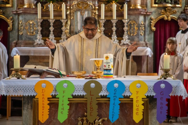 Aktuelle Informationen Fronleichnam im Pfarrverband 10/06/2024 10/06/2024 Das gemeinsame Fronleichnamsfest des Pfarrverbands St. Quirin und St. Michael fand heuer in Lochhausen statt. Aufgrund der wechselhaften Wetterlage fand die Fronleichnamsprozession in kürzerer Form in der Pfarrkirche statt. Fotos: Karsten Schmid